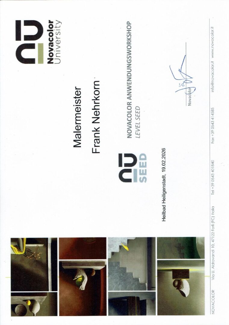 Malermeister Frank Nehrkorn: nach der Ausbildung im elterlichen Betrieb und 3 Gesellenjahren besuchte ich die 2-jährige Fachschule für Farb- und Lacktechnik in Hildesheim. Als Malermeister und staatl. geprüfter Farb- und Lacktechniker übernahm ich den Betrieb von meinem Vater Friedrich Nehrkorn am 01.03.1994